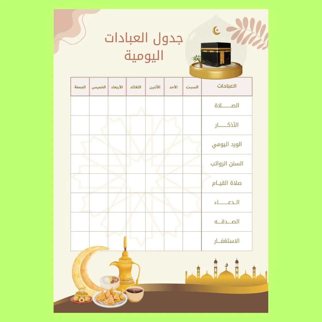 جدول تتبع العبادات اليومي (PDF) – قالب جاهز للطباعة والالتزام